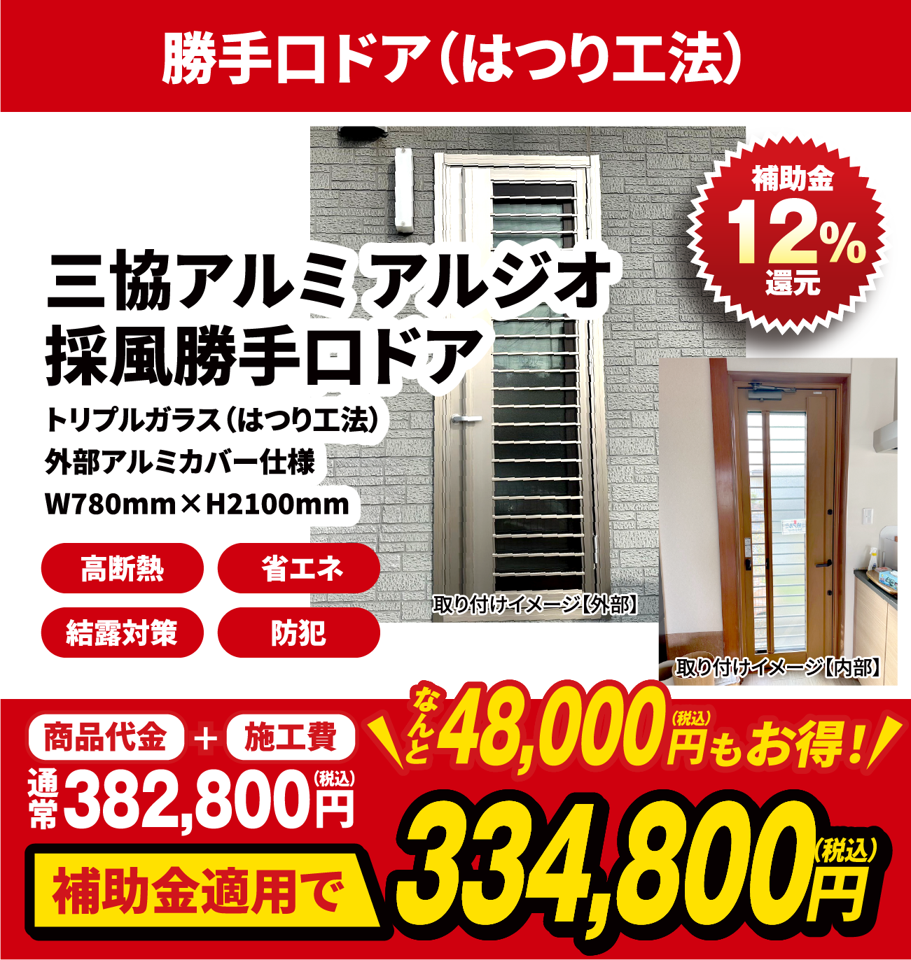 窓の改修と同一契約内で断熱性能の高いドアに改修する場合に限り補助の対象とします。