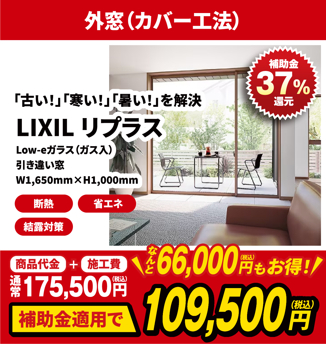 補助金対象の工事の場合、補助金分を差引いた金額をお支払いいただきます。